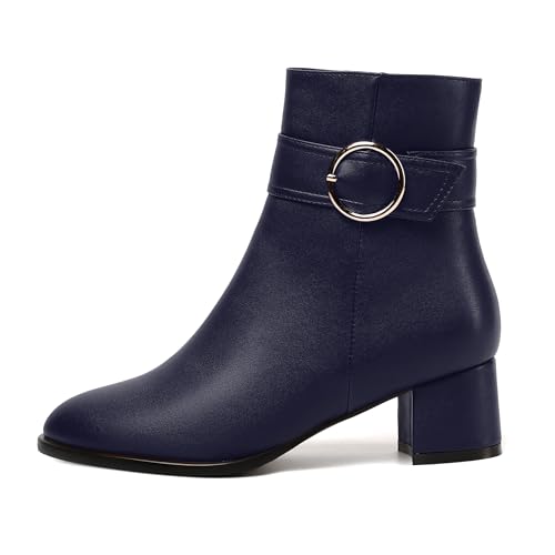 NUMALEO Womens Matte Zip Fashion Round Toe Party Solid Chunky Low Heel Ankle High Boots 2 Inch 5