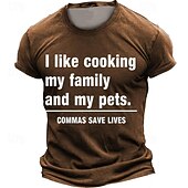 More information about Men's I like Cooking My Family and My Pets T Shirt Short Sleeve T shirt 3D Print Crew Neck Shirt Daily Designer Street Style Sports Outdoor Holiday Going out Black Brown Dark Blue Spring & Summer