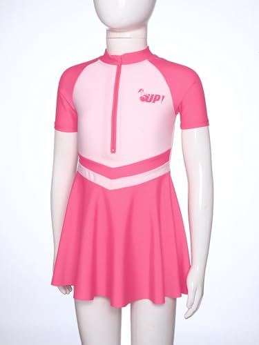 Choomomo Girls 2-Piece Round Neck Rash Guard Sets Short Sleeve Front Zipper Dress with Trunks 6