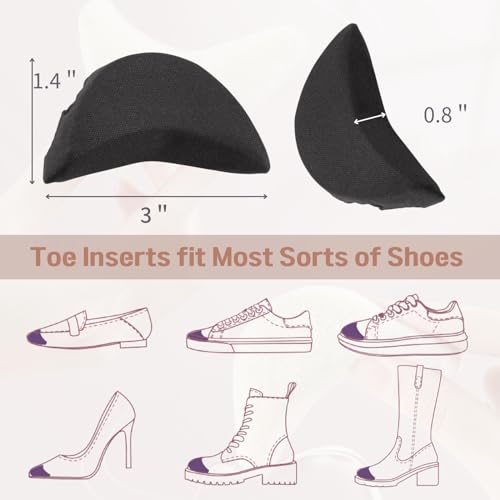• Shoe Inserts for Women Men: toe filler inserts are suitable for both men and women shoes, such as running shoes, athletic shoes, dress shoes, work shoes, pumps, high heels, casual shoes, flats, running shoes, boots and etc. But please make sure the toe filler is thinner and not wider than your shoes, otherwise the shoe inserts may not work well