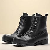 More information about Men's Black Lace-Up Combat Boots Genuine Leather Rugged Military Style Casual Fashion Shoes for Outdoor and Halloween Costume