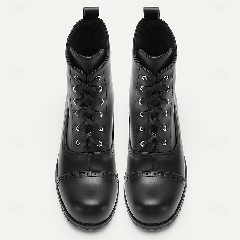Men's Black Lace-Up Combat Boots Genuine Leather Rugged Military Style Casual Fashion Shoes for Outdoor and Halloween Costume 1