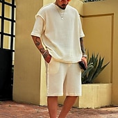 More information about Men's T-shirt Suits 2 Pieces Outfits Tee & Shorts Short Sleeve Crew Neck Summer Plain Fashion Casual 2 Piece Vacation Daily Wear Going out Beige Top Tee for Men