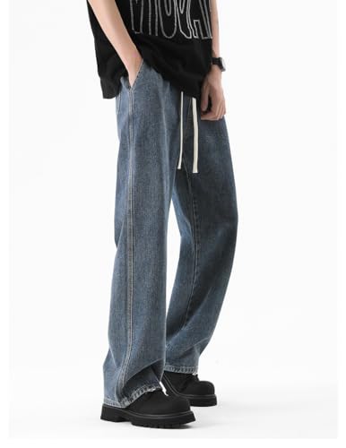 Men's Jeans Spring Drawstring Waist Straight Leg Denim Pants 5