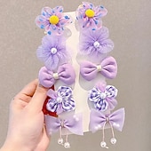 10pcs Kids Girls' Hair Accessories Sweet Daily Plaid Yellow Pink 6