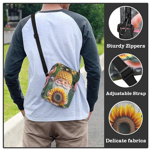 VIGTRO Small Crossbody Bag for Women Men, Flamingo Sunflower Gnome Messenger Bag Purse with Adjustable Strap, Spring Summer Small Shoulder Bag for Travel Outdoor Sports 5