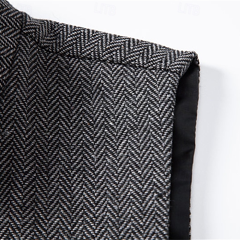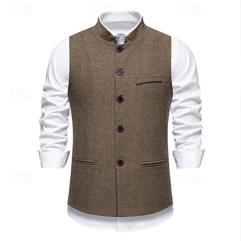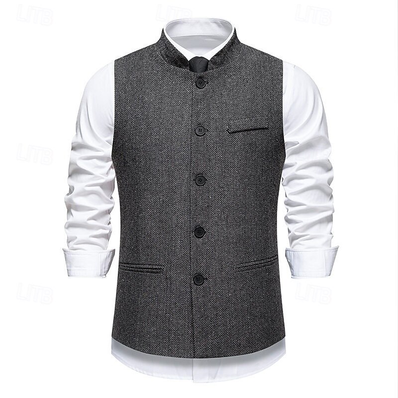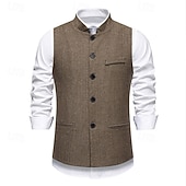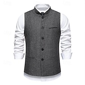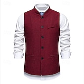 More information about Men's Vest Waistcoat Gilet Vacation Party Business Fashion Casual Spring Fall Pocket Buttons Polyester Comfortable Plaid Stripes Single Breasted One-button Stand Collar Regular Fit Wine Navy Blue