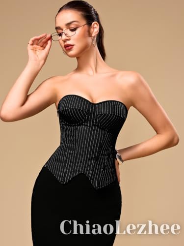 More information about Corset Top for Women, Sexy Lace Up Overbust Bustier, Strapless Zipper Side Tops, Office Club Going Out Outfits