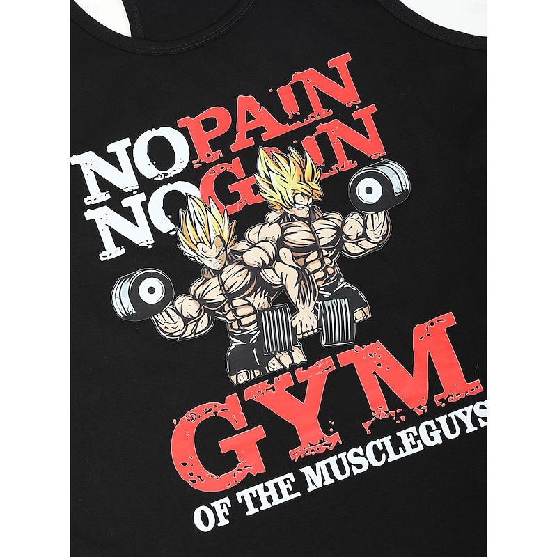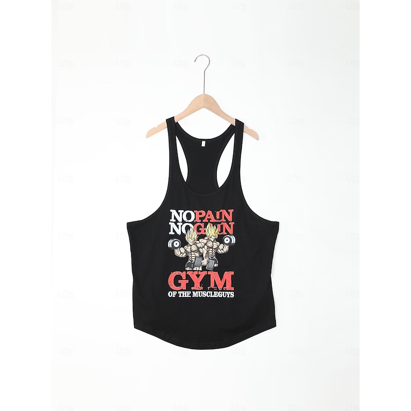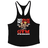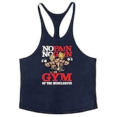 Men's Gym Workout Stringer Tank Top | "No Pain No Gain" Muscle Graphic | Fitness Sleeveless 15