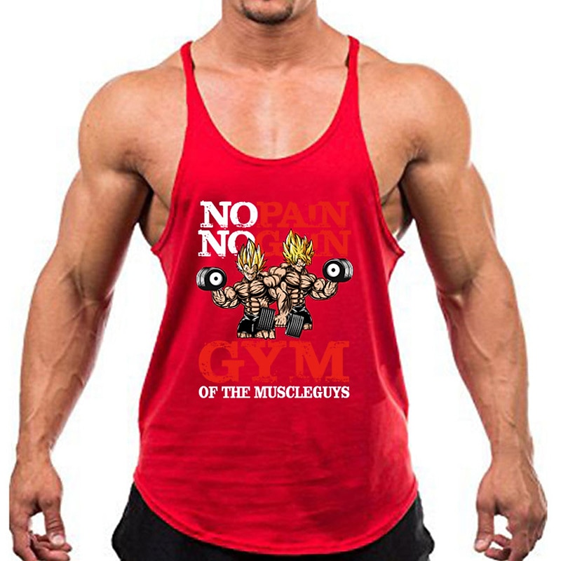 HOT ! Men's Gym Workout Stringer Tank Top | "No Pain No Gain" Muscle Graphic | Fitness Sleeveless