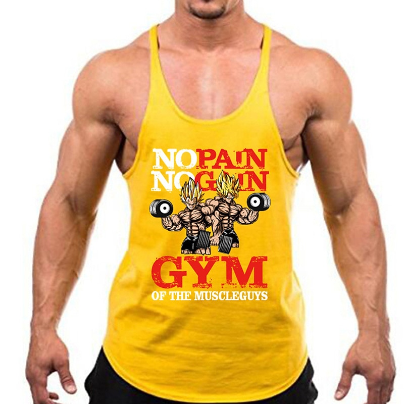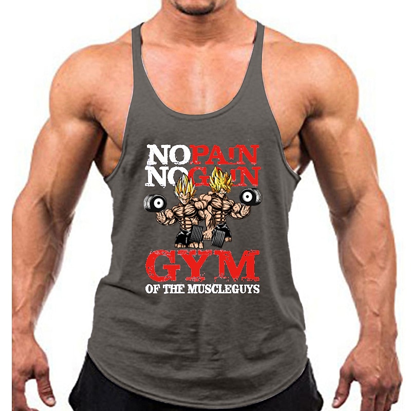 Men's Gym Workout Stringer Tank Top | "No Pain No Gain" Muscle Graphic | Fitness Sleeveless 20