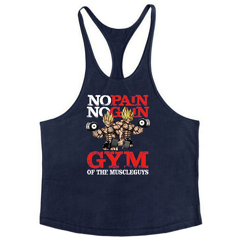 Men's Gym Workout Stringer Tank Top | "No Pain No Gain" Muscle Graphic | Fitness Sleeveless 22