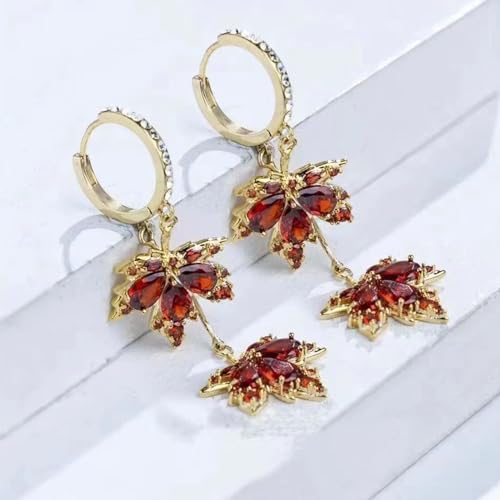 • Red maplet earrings:Get ready for fall with these leaf dangle earrings! Charming orange garnet red CZ fall leaf earrings quality cubic zirconia, giving brilliant shine and vivid sparkle,very eye-catching.