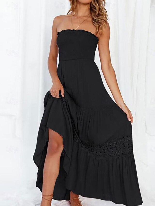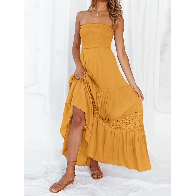 Women's Long Dress Maxi Dress Casual Dress Chiffon Dress Summer Dress Elegant Stylish Casual Vacation Daily Beach Regular Fit Plain Sleeveless Halter Neck Black White Yellow Green Summer 17