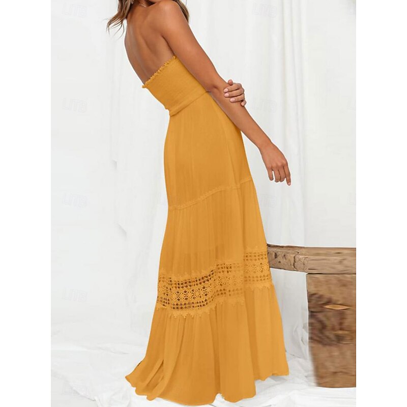 HOT ! Women's Long Dress Maxi Dress Casual Dress Chiffon Dress Summer Dress Elegant Stylish Casual Vacation Daily Beach Regular Fit Plain Sleeveless Halter Neck Black White Yellow Green Summer