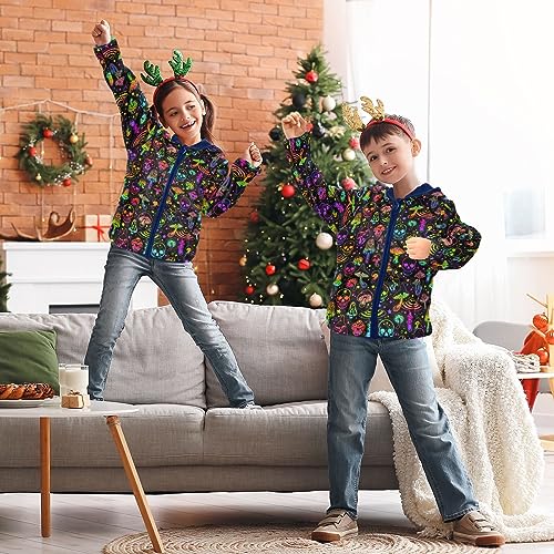 Bright Mushrooms Skulls Boys Fleece Hoody Jacket Zip Up Coat Warm Fall Winter Plush Jacket Long Sleeve Outerwear 5