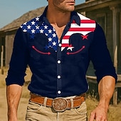 More information about Men's American US Flag Patriotic Shirt Western Shirt Cowboy Shirt Long Sleeve Vintage Retro Outdoor Casual WorkWear Spring Fall Turndown 3D Print Linen Like Shirt Dark Blue