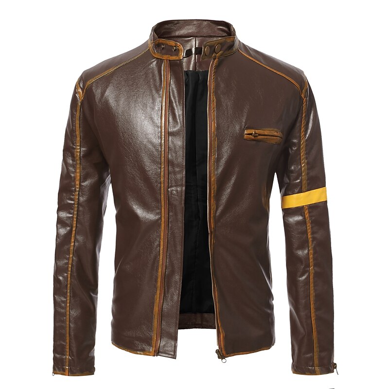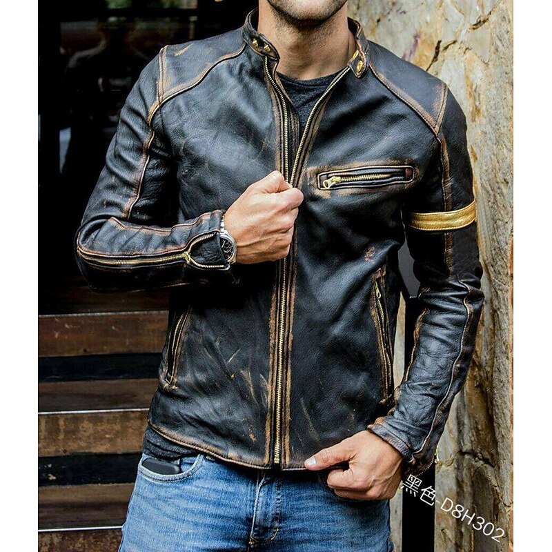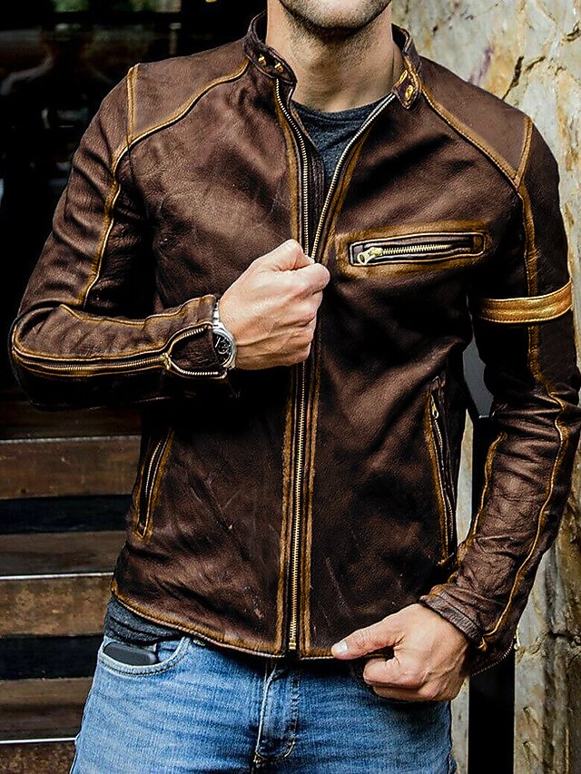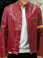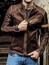 More information about Men's Faux Leather Jacket Transition Jacket Biker Jacket Vintage Leather Jacket Streetwear Thermal Warm Rain Waterproof Vintage Style Spring Fall Winter Chic & Modern ArmyGreen Wine Navy Blue khaki