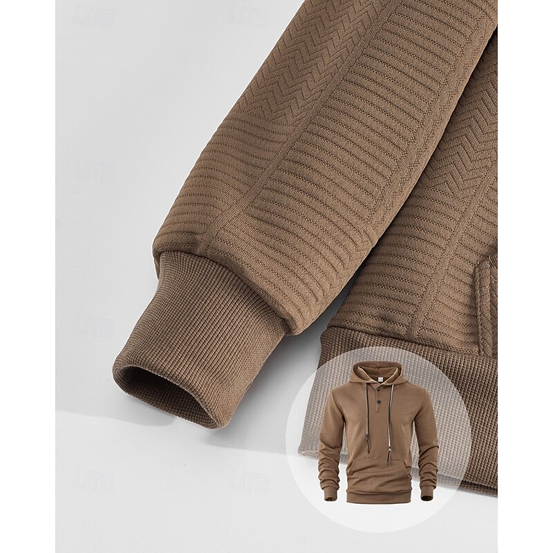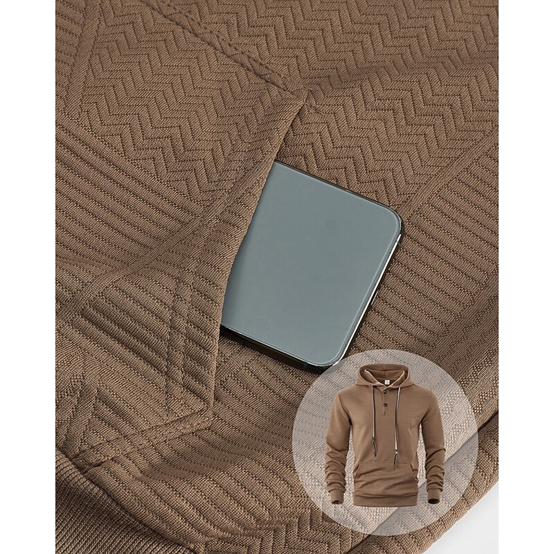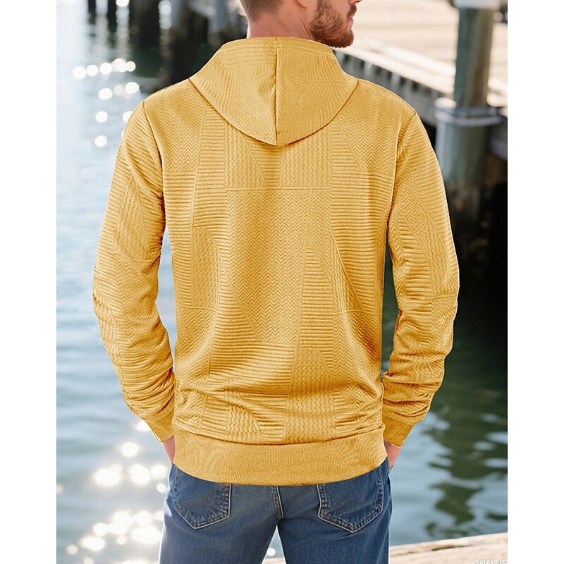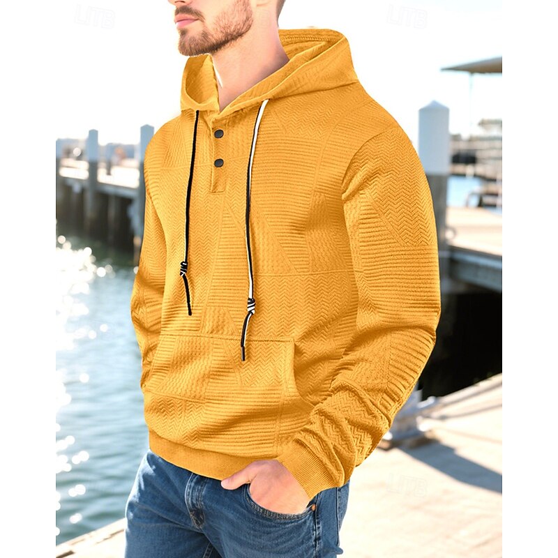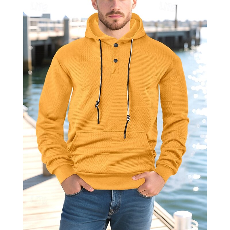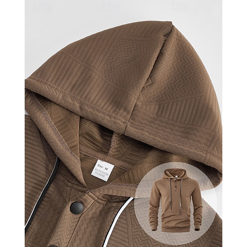 More information about Men's Hoodie Button Up Hoodie Black White Yellow Navy Blue Coffee Hooded Plain Jacquard Drawstring Pocket Ribbed Sports & Outdoor Daily Holiday Polyester Streetwear Basic Casual Spring Fall Clothing