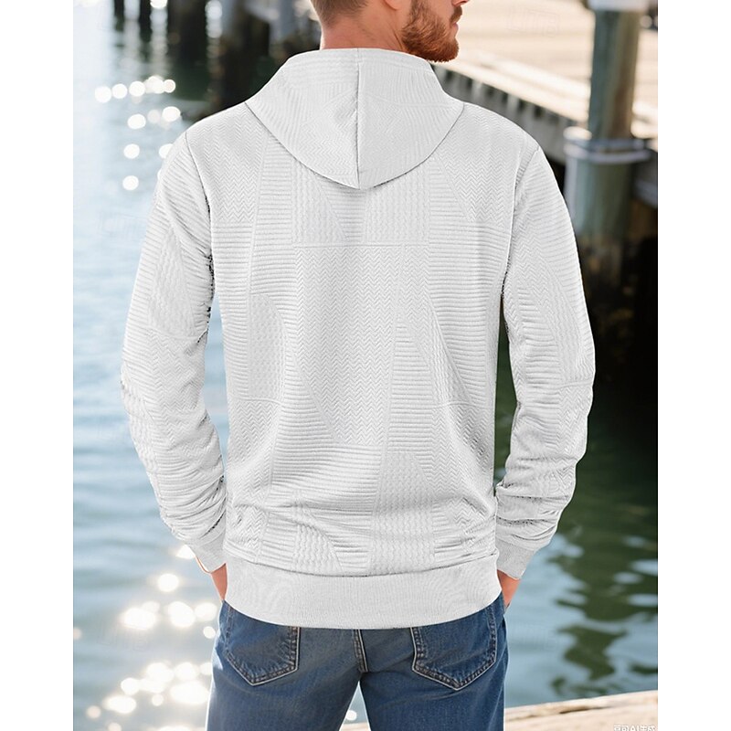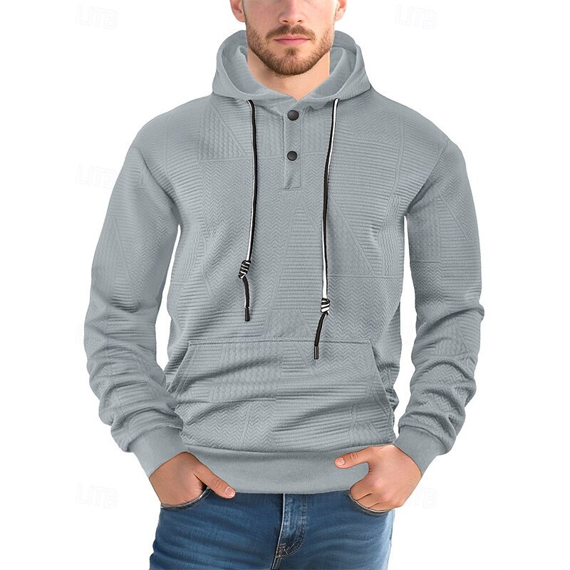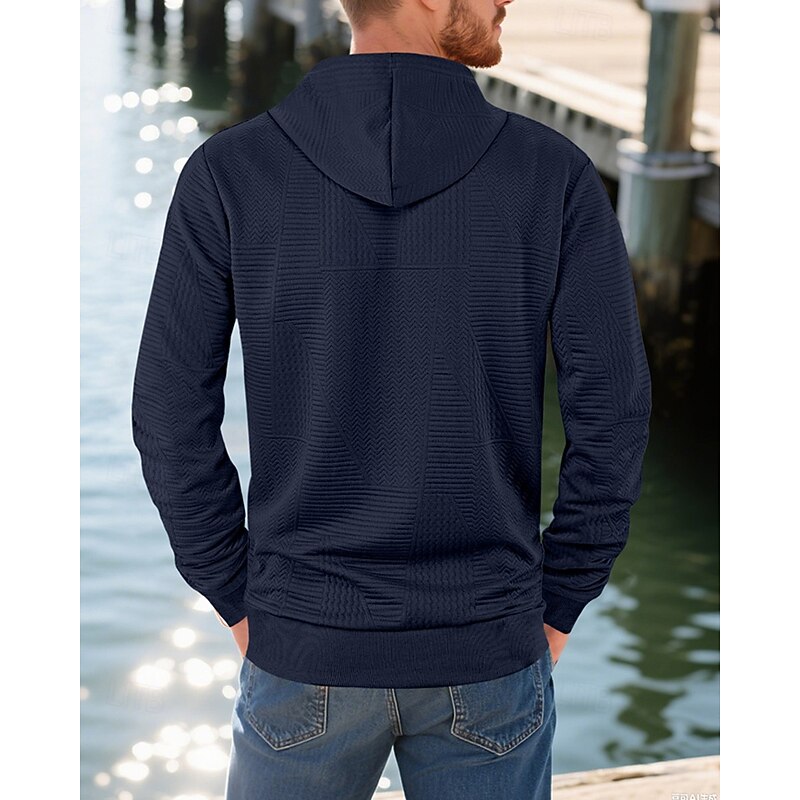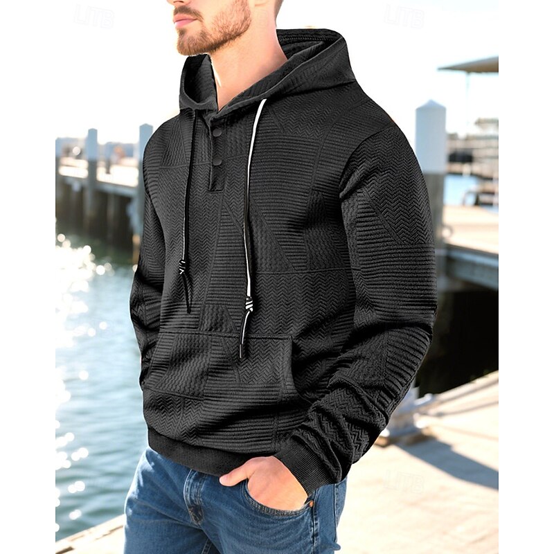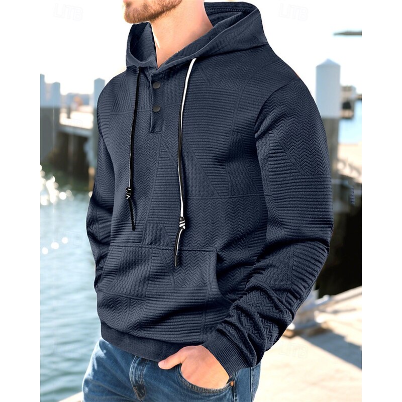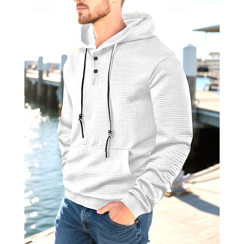 More information about Men's Hoodie Button Up Hoodie Black White Yellow Navy Blue Coffee Hooded Plain Jacquard Drawstring Pocket Ribbed Sports & Outdoor Daily Holiday Polyester Streetwear Basic Casual Spring Fall Clothing