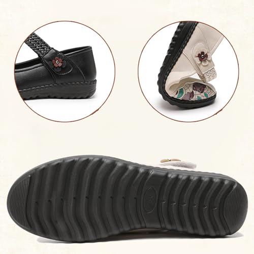 Women's Casual Leatehr Embroidery Mary Jane Flats Shoes,Comfort Round Toe Woven Hook & Loop Soft-Soled Walking Shoes,Lightweight Breathable Lug Sole Dance Shoes 4