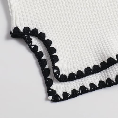 • STYLISH SCALLOP DETAILS: This women's white ribbed knit tank top is accented with chic black scalloped trim at the neckline and hem. The unique edges add a playful, feminine touch to your casual or formal look.