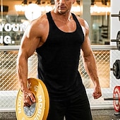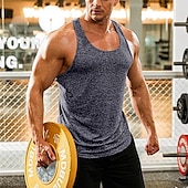 Highlights [Fabric:] Crafted from a comfortable blend of polyester and spandex, this men's tank top ensures breathability and flexibility. The fabric's moisture-wicking properties help keep you dry and comfortable during intense workouts. [Fit:] Designed with a classic slim-fit style, the tank top contours to the body for a flattering look. The wide armholes allow for an enhanced range of motion, ideal for weightlifting or high-intensity workouts. [Design Highlights:] This tank features a timeless crew neck and a plain, heathered gray color that adds a modern touch. Its versatile design effortlessly transitions from gym sessions to casual outings, making it a staple piece in any wardrobe. [Occasions:] Perfect for spring and summer seasons, this tank top is suitable for a variety of occasions such as vacations, streetwear, going out, or casual daily activities. It blends functionality with a sleek, fashionable style. [Size Range:] Available in a range of sizes from S to XXXL, this tank top caters to different body types, offering a comfortable and personalized fit for everyone.