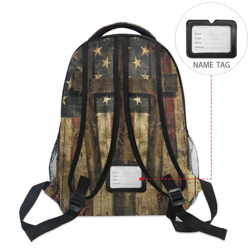 Backpack Retro American Flag Cross for Men Women Laptop Travel Backpack Book Bag Personalized Backpack 12” x 16.9” 7