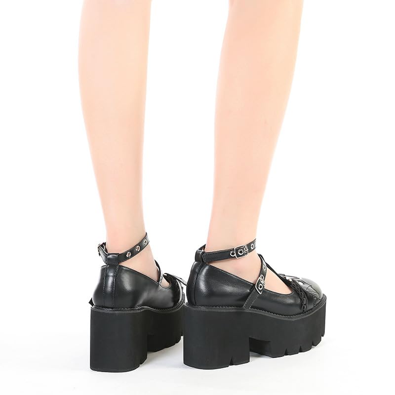 More information about Women's Black High Heel Mary Jane Platform Shoes, Gothic Kawaii Round Toe Chunky Heels Lolita Shoes, Cute Buckle Cosplay Goth Pumps