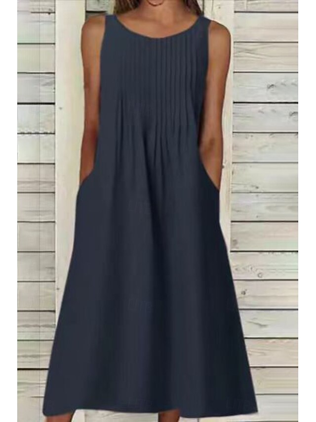 This Women's Midi Dress Linen-Inspired Dresses Cotton Linen Dress Fashion Basic contemporary Vacation Daily Holiday Regular Fit Plain Sleeveless Crew Neck Light Grey Dark Gray Summer combines elegant design with practical functionality. Every detail has been carefully considered to ensure you get the best possible experience. The first-class construction means this product will serve you well for years to come.
