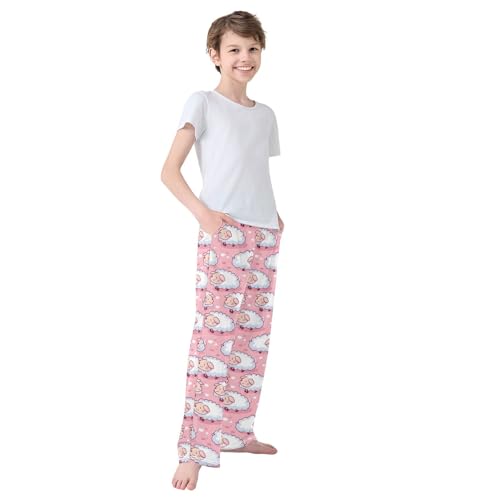 Cute Sheep Sit Cartoon on Pink Background Pajamas Bottoms with Pockets Comfy Pjs Sleepwear Elastic Waistband Pajamas Pants Lounge Pants for 6-14 Years 7