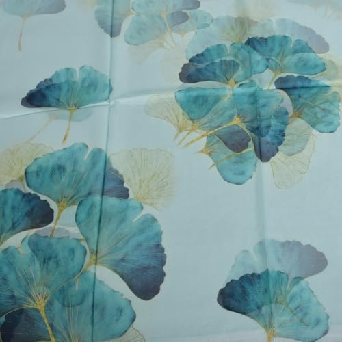 • 2. Pattern Design: Elegant Ginkgo Leaf Artistry This silk scarf showcases a captivating ginkgo leaf pattern. The ginkgo leaves, in shades of turquoise and blue with subtle golden veins, are artfully printed on a soft, light - blue base. The design captures the unique shape and texture of ginkgo leaves, creating a serene, nature - inspired aesthetic. It’s not just an accessory but a wearable tribute to the beauty of ginkgo foliage, adding a touch of refined, understated charm to any outfit.