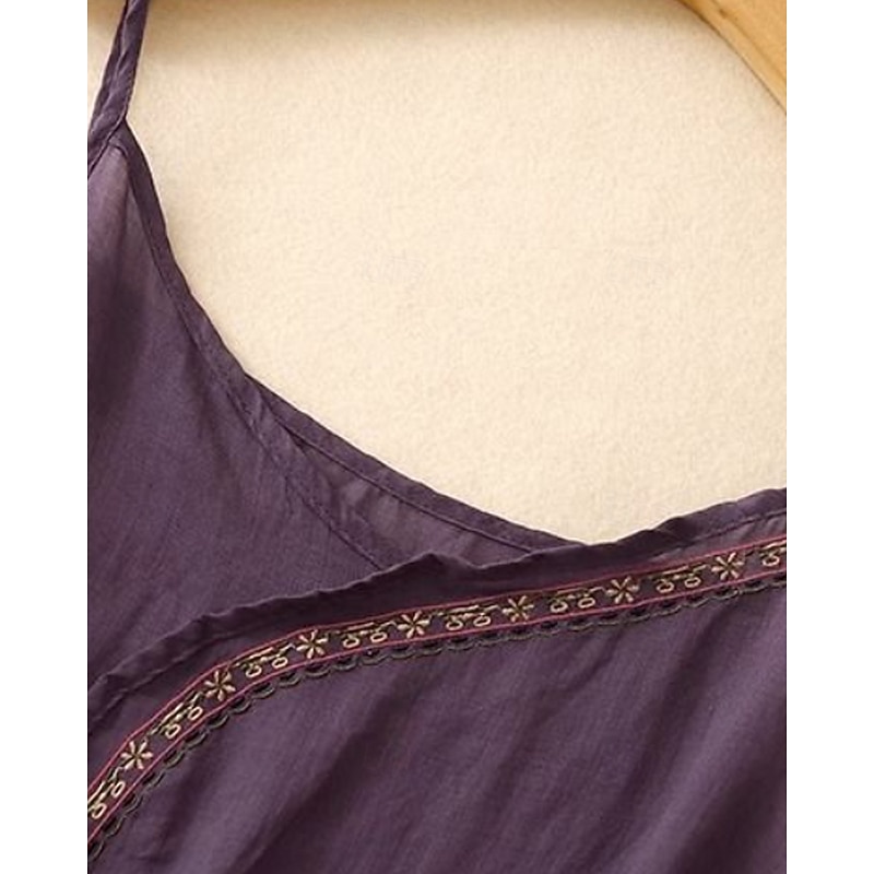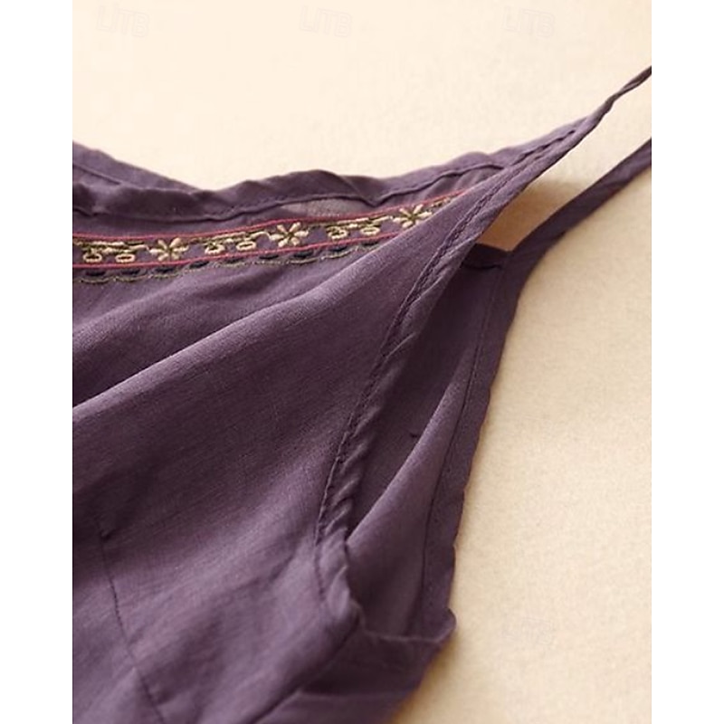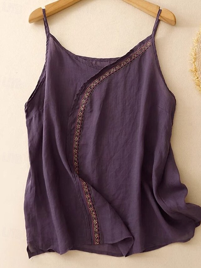 This Women's Cotton Linen Vest Blouse Flower sophisticated Modern Sleeveless Strap Regular Tops Holiday Going out Embroidered Purple Summer combines elegant design with practical functionality. Every detail has been carefully considered to ensure you get the best possible experience. The superior construction means this product will serve you well for years to come.