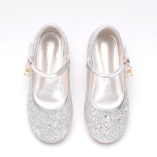 Little Girl's Adorable Mary Jane Ballerina Ballet Flats Sparkle Wedding Party Flower Girl Princess Dress Shoes for Kids 4