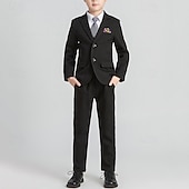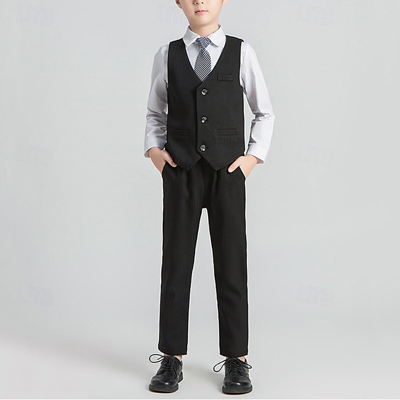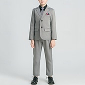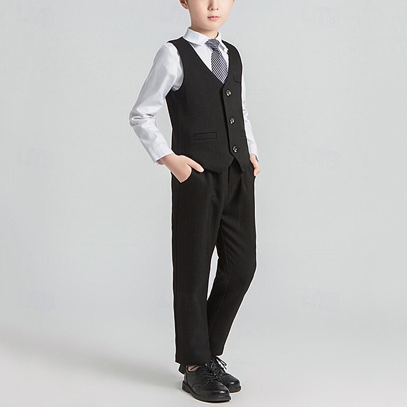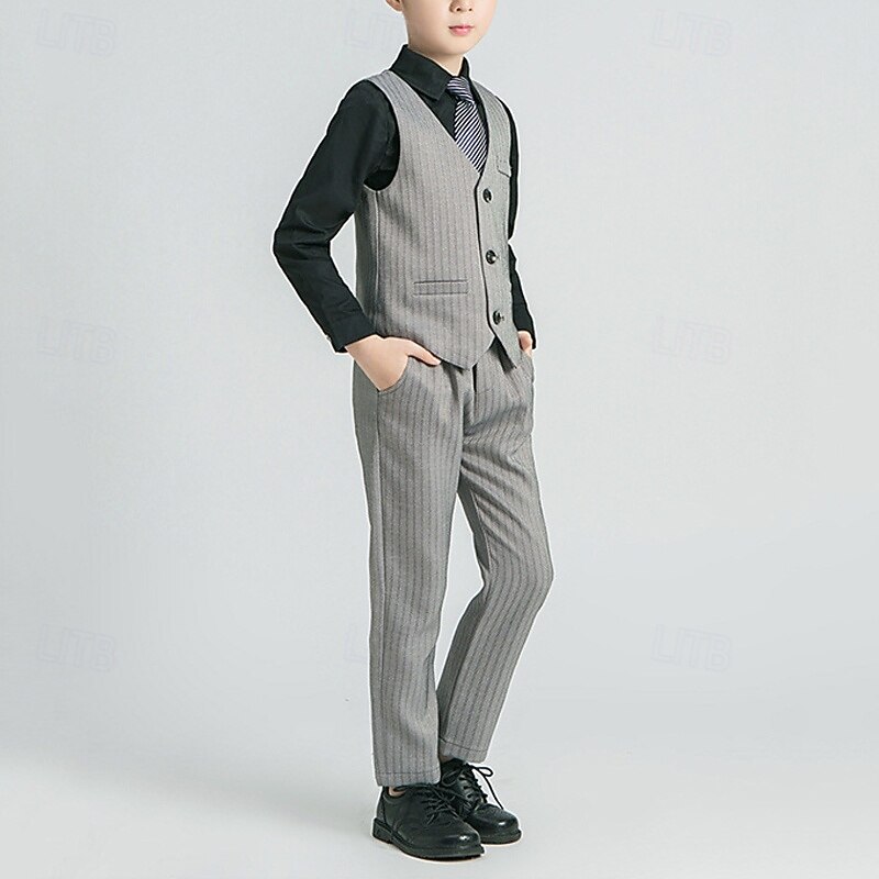 More information about 4 Pieces Ring Bearer Suit Boys Kids Suit Formal Suit Blazer & Vest & Pants & Tie Formal Party Valentines Fashion Cool Stripe Pocket Black Gray Polyester