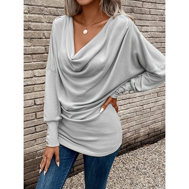 This Women's Blouse Solid Color Vintage sophisticated Classic Long Sleeve Crew Neck Regular Tops Daily Draped Black Pink Wine Blue Khaki Spring Fall Winter combines elegant design with practical functionality. Every detail has been carefully considered to ensure you get the best possible experience. The superior construction means this product will serve you well for years to come.
