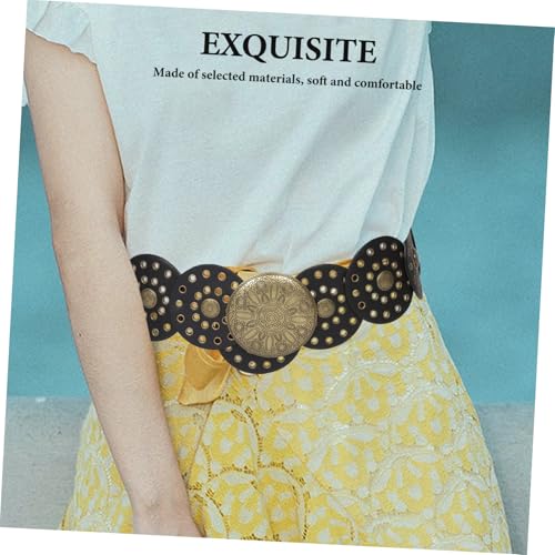 More information about BESPORTBLE Wide Disc Belt for Women Vintage Hollow Leather Waist Belt Fit for Dresses Jeans Fashionable Western Style with Eye Catching Disc Decorations