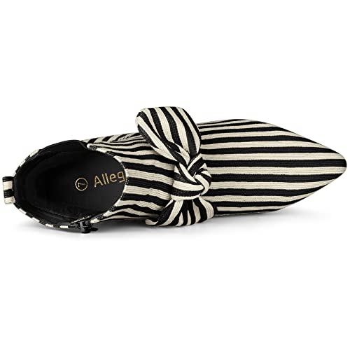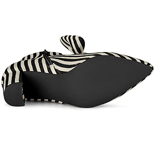 Allegra K Women's Pointed Toe Zip Striped Chunky Heels Ankle Boots 6
