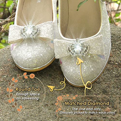Sole material: Thermoplastic PolyurethaneOuter material: Sparkle glitterClosure type: Hook & LoopWater resistance level: Not Water ResistantADORABLE & COMFORTABLE DESIGN: These mary jane shoes for girls are crafted with a glamorous no-fall-off glitter upper. Made with a soft, cushioned insole, they’re perfect as toddler dress shoes or flower girl shoes for all occasions, from parties and weddings to everyday wear.SECURE FIT FOR ACTIVE KIDS: Featuring an easy-to-use hook-and-loop strap, these toddler mary jane shoes stay securely in place, making them ideal for play and special events. Designed to fit comfortably and securely, ensuring little ones can move freely.DURABLE TPU OUTSOLE: Made with a custom TPU outsole for durability and abrasion resistance, these toddler princess shoes and kids’ heels provide reliable traction. They’re built to withstand wear, so your child can step confidently on various surfaces.CLASSIC STYLE FOR ANY OCCASION: With a low 1.2-inch heel, these princess shoes for girls provide just the right height for elegance without sacrificing comfort. Perfect for birthdays, holidays, and school events, these little girl dress shoes make a charming gift that’ll be loved.THOUGHTFUL & REUSABLE PACKAGING: These toddler girl dress shoes come in charming packaging that doubles as a storage box for accessories, hair clips, and more. Great for keeping things organized and creating an experience that’s as thoughtful as it is chic.