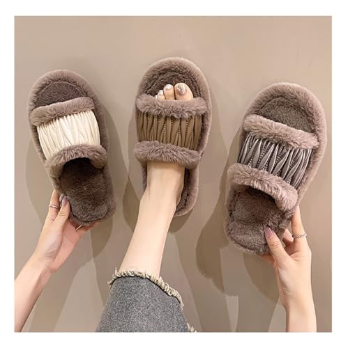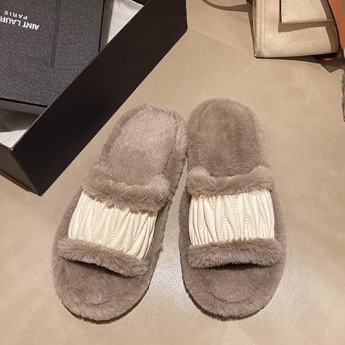 Women's Plush Slippers Warm Fur Slippers Fashionable Open Toe Slippers For Women Indoor And Outdoor 7