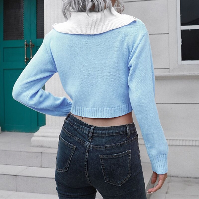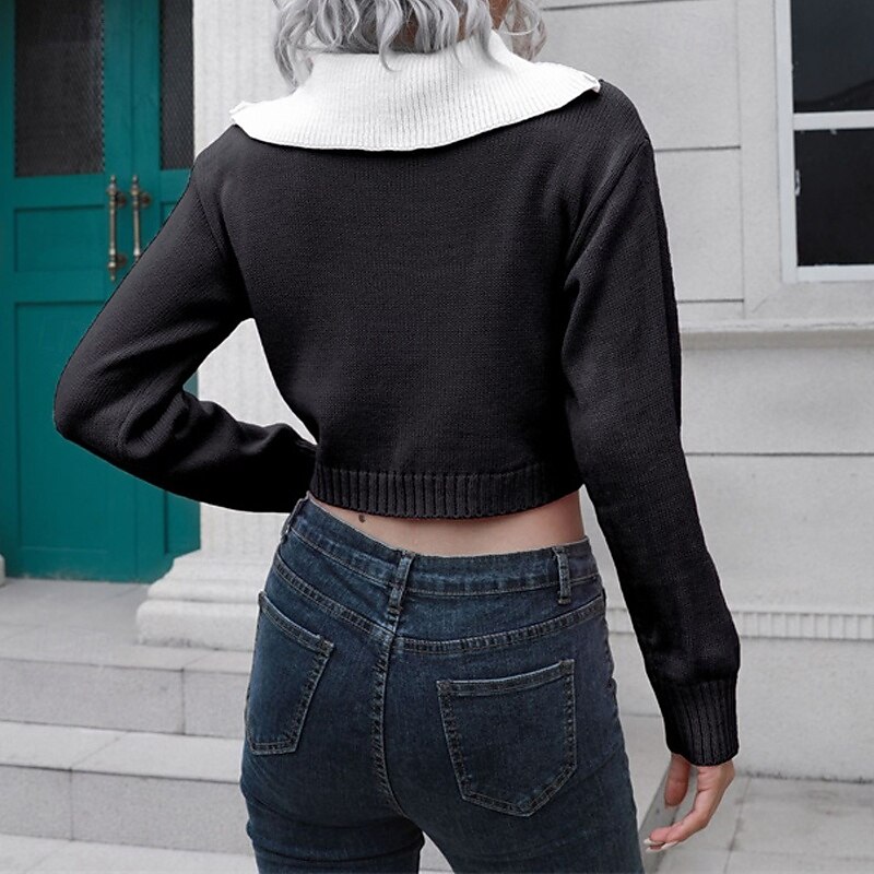 More information about Women's Pullover Casual Color Block Chunky Shirt Collar Knitted Long Sleeve Crop Tops Knit Daily Holiday Going out Black Pink Fall Winter