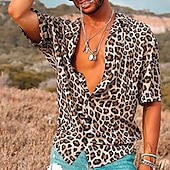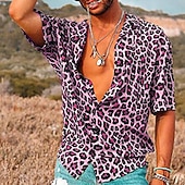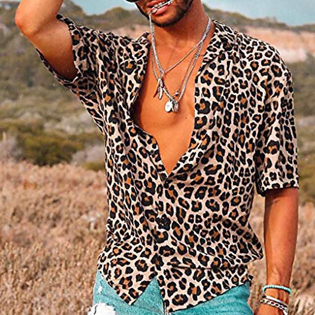More information about Men's Leopard Shirt Button Up Shirt Short Sleeve Sports Fashion Designer Daily Holiday Summer Spring Turndown Print Pink Blue Brown Green