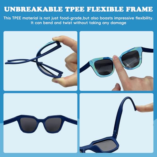 • Unbreakable Kid-Friendly Frames: The kids sunglasses made from Food-Grade, ultra-flexible TPEE material, these frames are virtually indestructible, completely flexible and unbreakable arms safe for kids. No more snapped arms or irritation! The lightweight design withstands drops, bends, and rough play