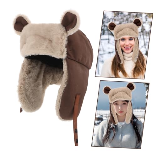 Kisangel Bear Ears Hat Cute Plush Earflaps for Cold Weather Comfortable Fit for Outdoor Activities for Skiing Hiking and Everyday Wear Coffee 1