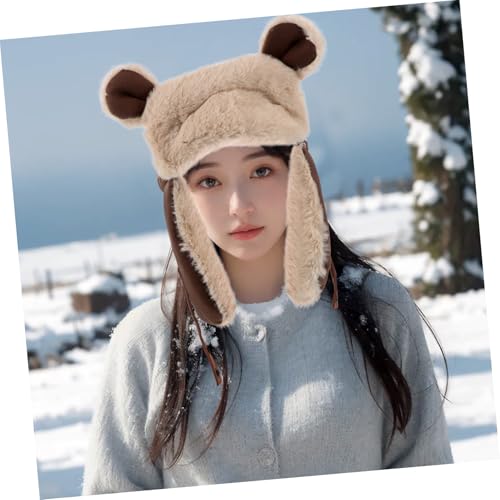 Kisangel Bear Ears Hat Cute Plush Earflaps for Cold Weather Comfortable Fit for Outdoor Activities for Skiing Hiking and Everyday Wear Coffee 6