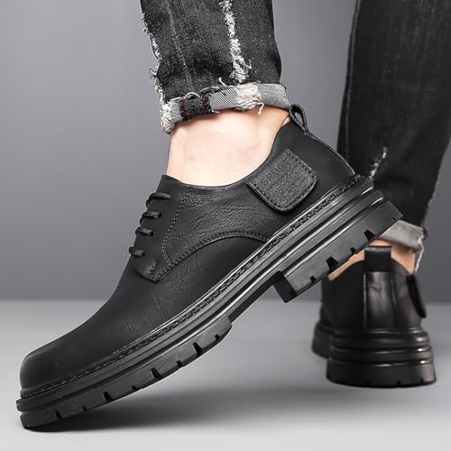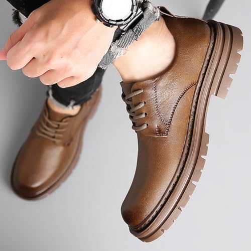 Men's Leather Lace Up Lug Sole Oxford Shoes Fashion Round Toe Hand Stitched Dress Sneakers Comfortable Non-Slip Softsole Casual Business Work Shoes 6