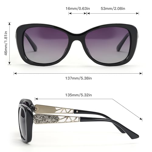 • 53mm Wrap Frame: Flatters Round & Oval Faces, designed by experts for women with round/oval faces, these 53mm wide lenses + 17mm nose bridge balance facial proportions The 133mm temples grip securely without pinching—no more sliding down or red marks.