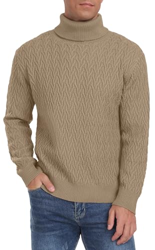 • FEATURES - This mens fashion cable knitted sweater featuring a classic turtleneck, long sleeves, a regular fit, and ribbed cuffs and hem in a solid color. The classic design is timeless.