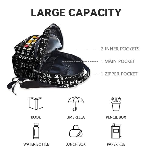 • Large Capacity Dimensions: 12" L x 5.4" W x 17" H. This ramen schoolbag includes a large main compartment with inner pockets for books, clothes, and folders. Plus front zippered pockets and expandable side pockets for water bottles and umbrellas. Ideal for school supplies and snacks
