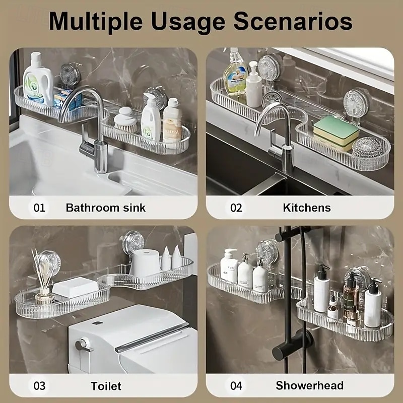 $9.99 - Clear Plastic Wall-Mounted Bathroom Organizer Shelf with Suction Cups No-Drill Removable Design Under-Sink Shelf Perfect for Vanity, Shower & Bathroom Essentials, Bathroom Organizers 2025. Shop for cheap Storage Racks online? Buy at lightinthebox.com on sale today!